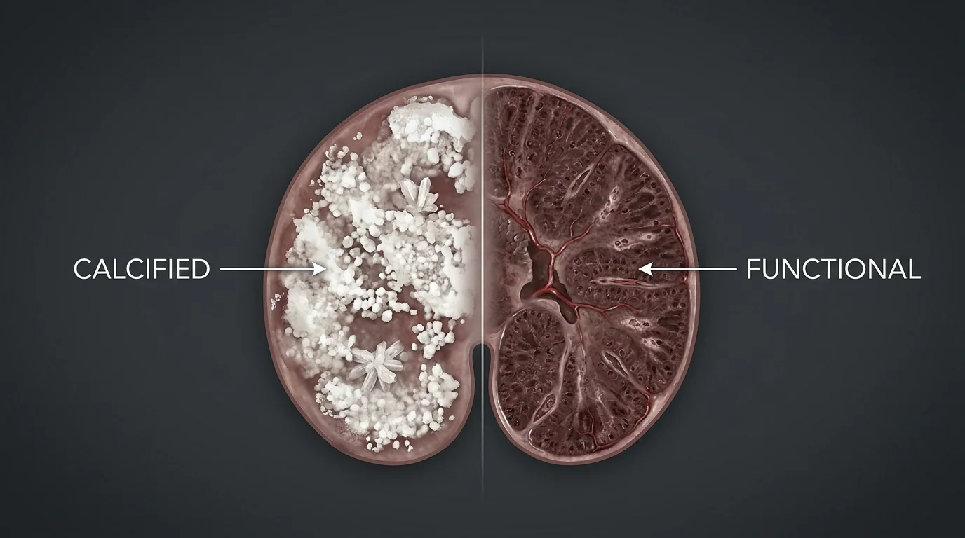 Two other things you need upfront: no human clinical trial has measured pineal calcification reversal as a direct endpoint. The evidence chain is built from adjacent science — fluoride excretion studies, soft-tissue calcification biochemistry, the K2/MGP pathway. It’s the strongest thread available. It isn’t a controlled trial. Also: this article focuses on the whether of reversal. For the step-by-step protocol, see our full reversal protocol.
